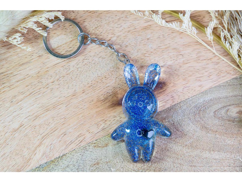 Jen tak pro radost sobě nebo jako dárek vašim nejbližším. Originální přívěsek na klíče v podobě průhledného zajíčka z resinu s modrými třpytkami se stane stylovým a nepřehlédnutelným doplňkem, který dokáže rozzářit i tak všední věc, jako je svazek klíčů.