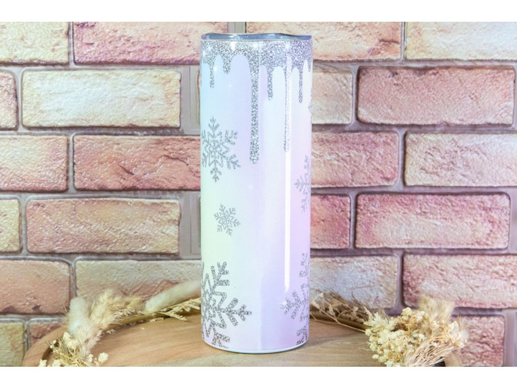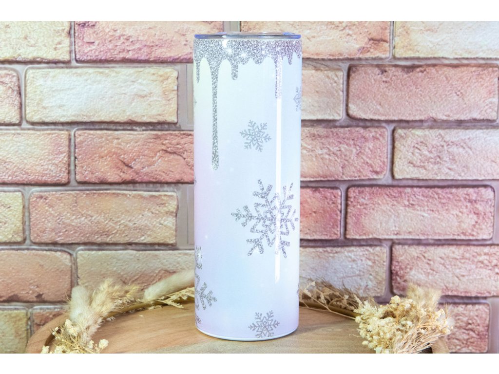 Stylový termo kelímek KudrnkaART s třpytivým zimním motivem – pro horkou kávu i ledové drinky. Design, co má duši, a funkčnost, co vydrží.