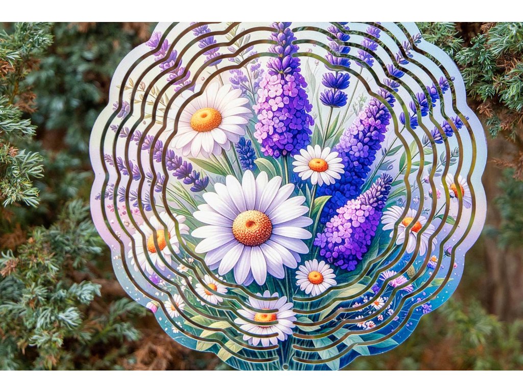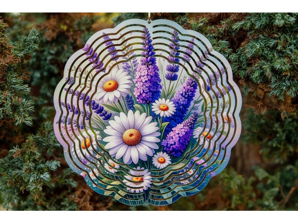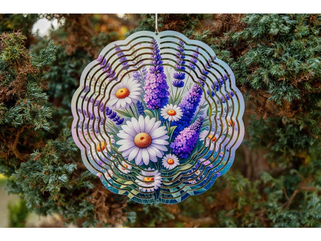 Větrný spinner s 3D efektem – levandule a kopretiny