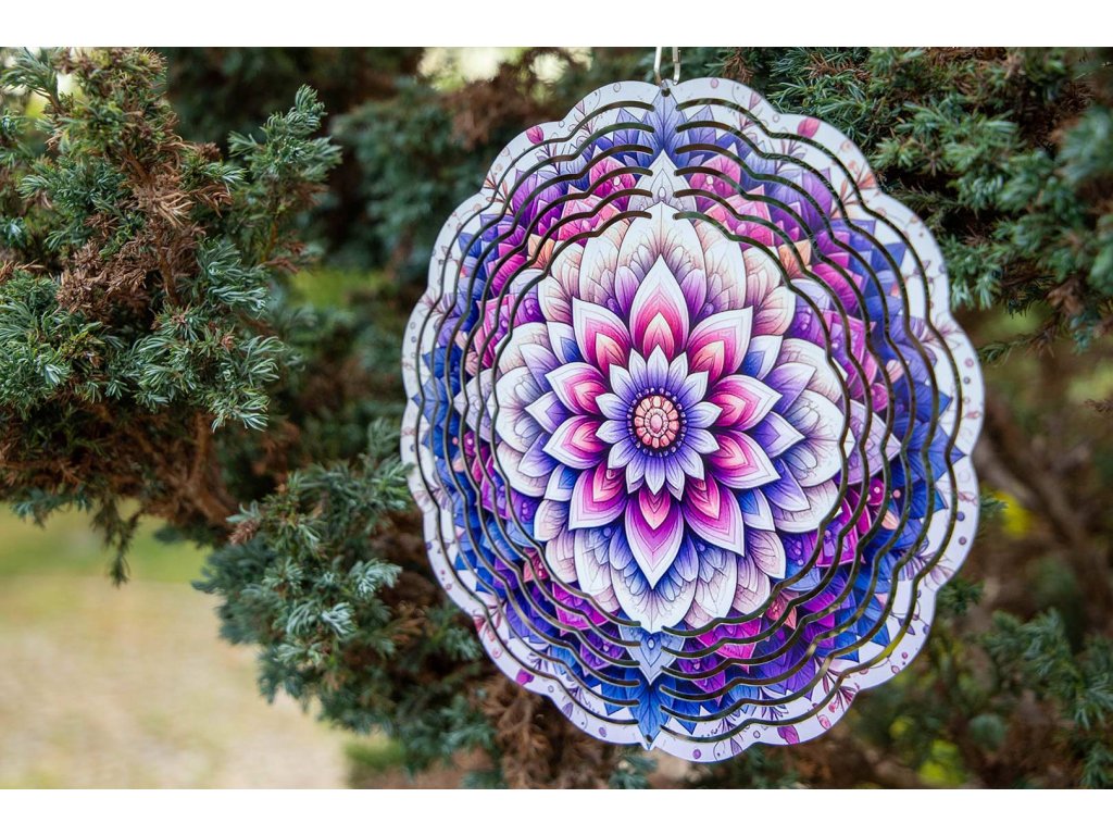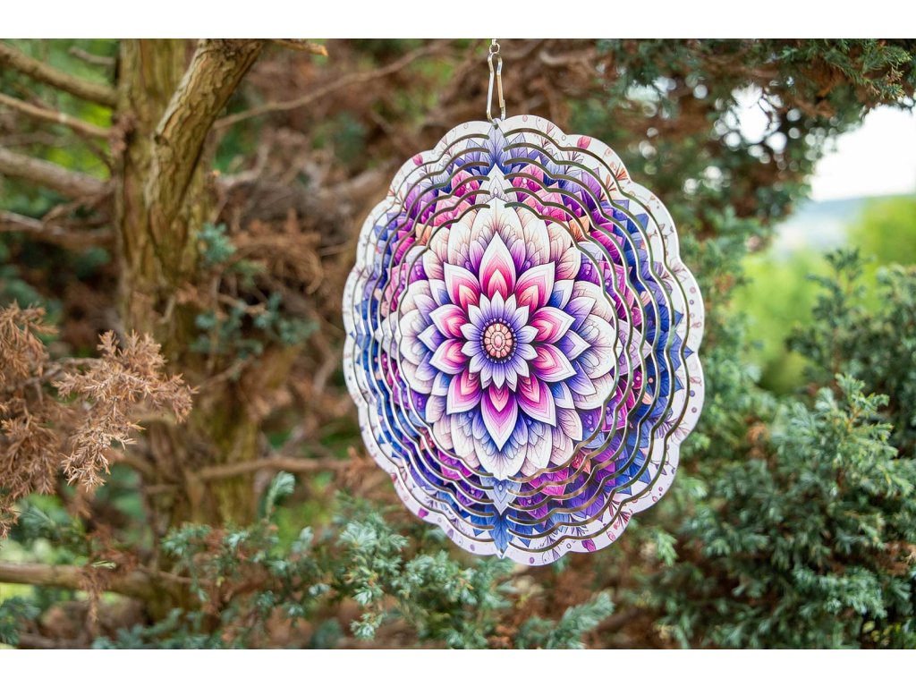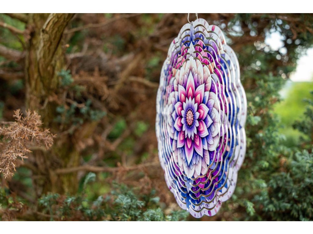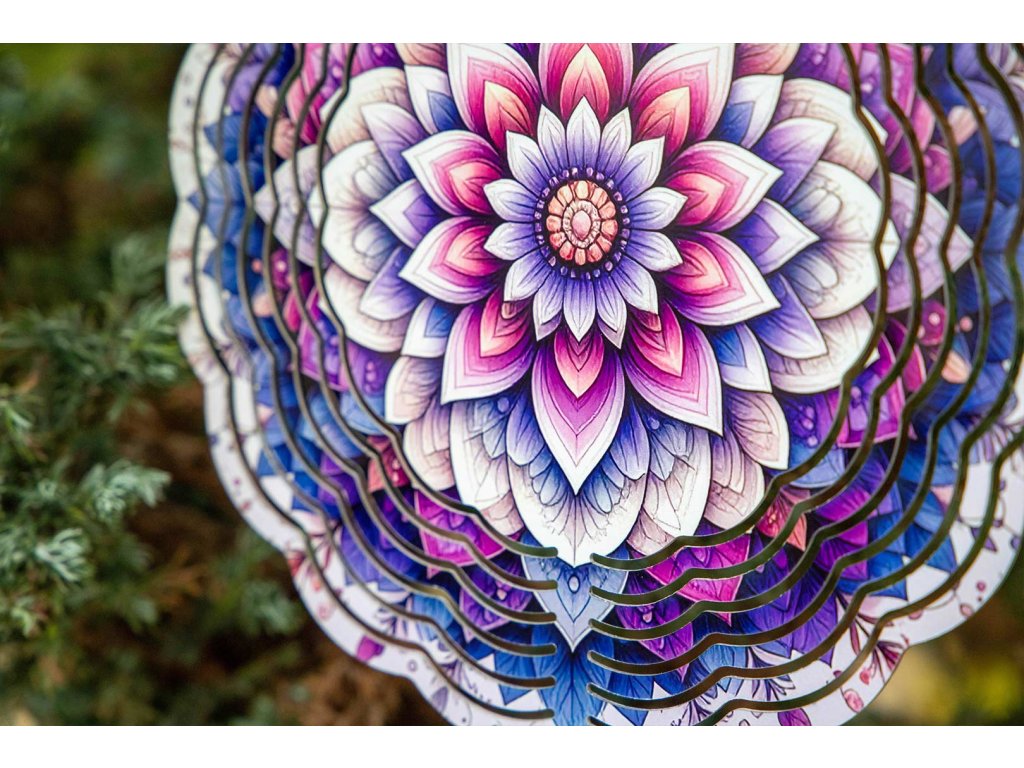 Vneste do své zahrady nebo interiéru hravý pohyb a oslnivý vizuální efekt. Tento větrný spinner kombinuje moderní design, precizní zpracování a vysokou odolnost. Při otáčení vytváří 3D iluzi, která zaujme každého – ať už ho zavěsíte na strom, balkon nebo do okna. Průměr spinneru 20 cm.
