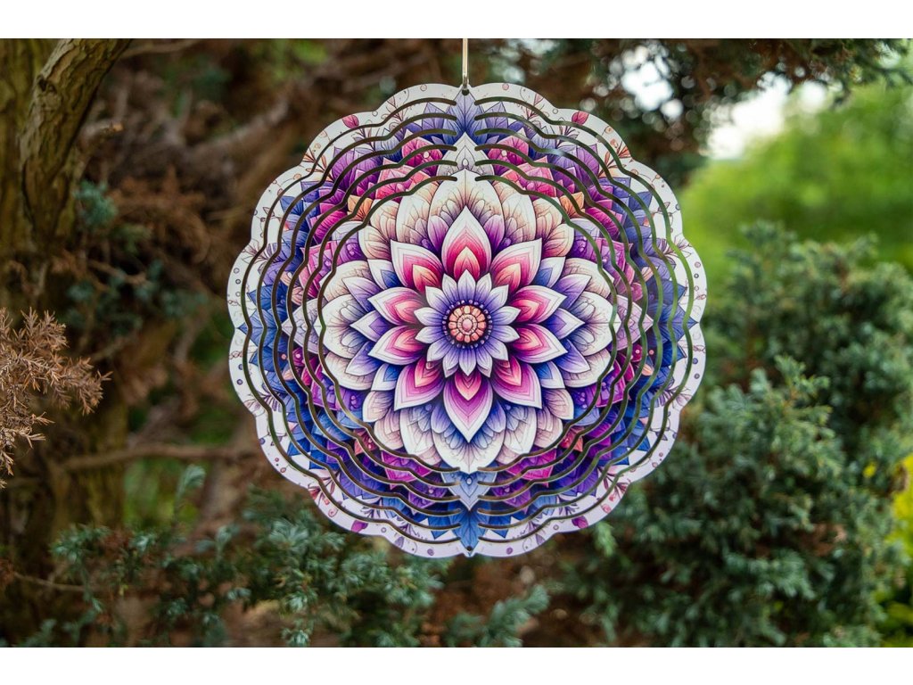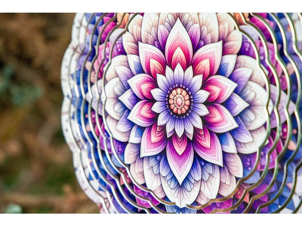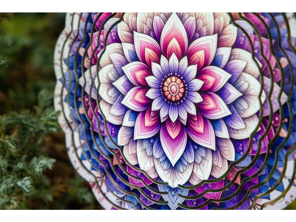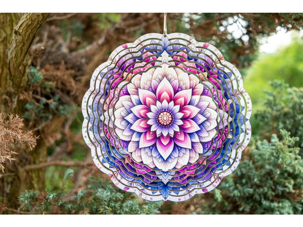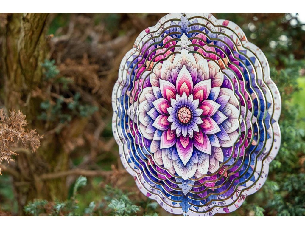 Vneste do své zahrady nebo interiéru hravý pohyb a oslnivý vizuální efekt. Tento větrný spinner kombinuje moderní design, precizní zpracování a vysokou odolnost. Při otáčení vytváří 3D iluzi, která zaujme každého – ať už ho zavěsíte na strom, balkon nebo do okna. Průměr spinneru 20 cm.