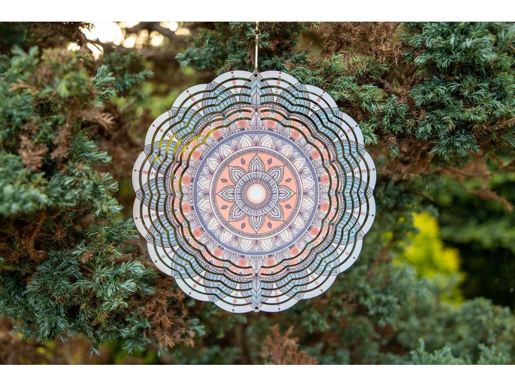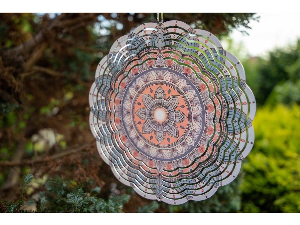 Vneste do své zahrady nebo interiéru hravý pohyb a oslnivý vizuální efekt. Tento větrný spinner kombinuje moderní design, precizní zpracování a vysokou odolnost. Při otáčení vytváří 3D iluzi, která zaujme každého – ať už ho zavěsíte na strom, balkon nebo do okna. Průměr spinneru 20 cm.
